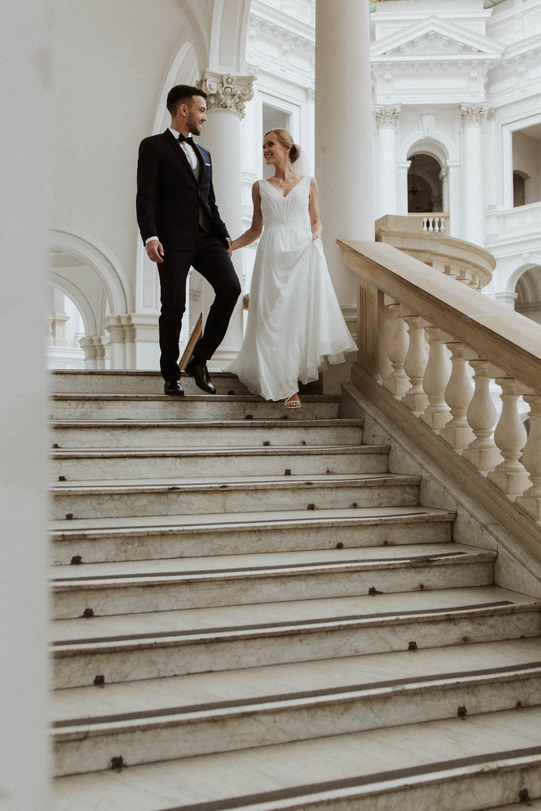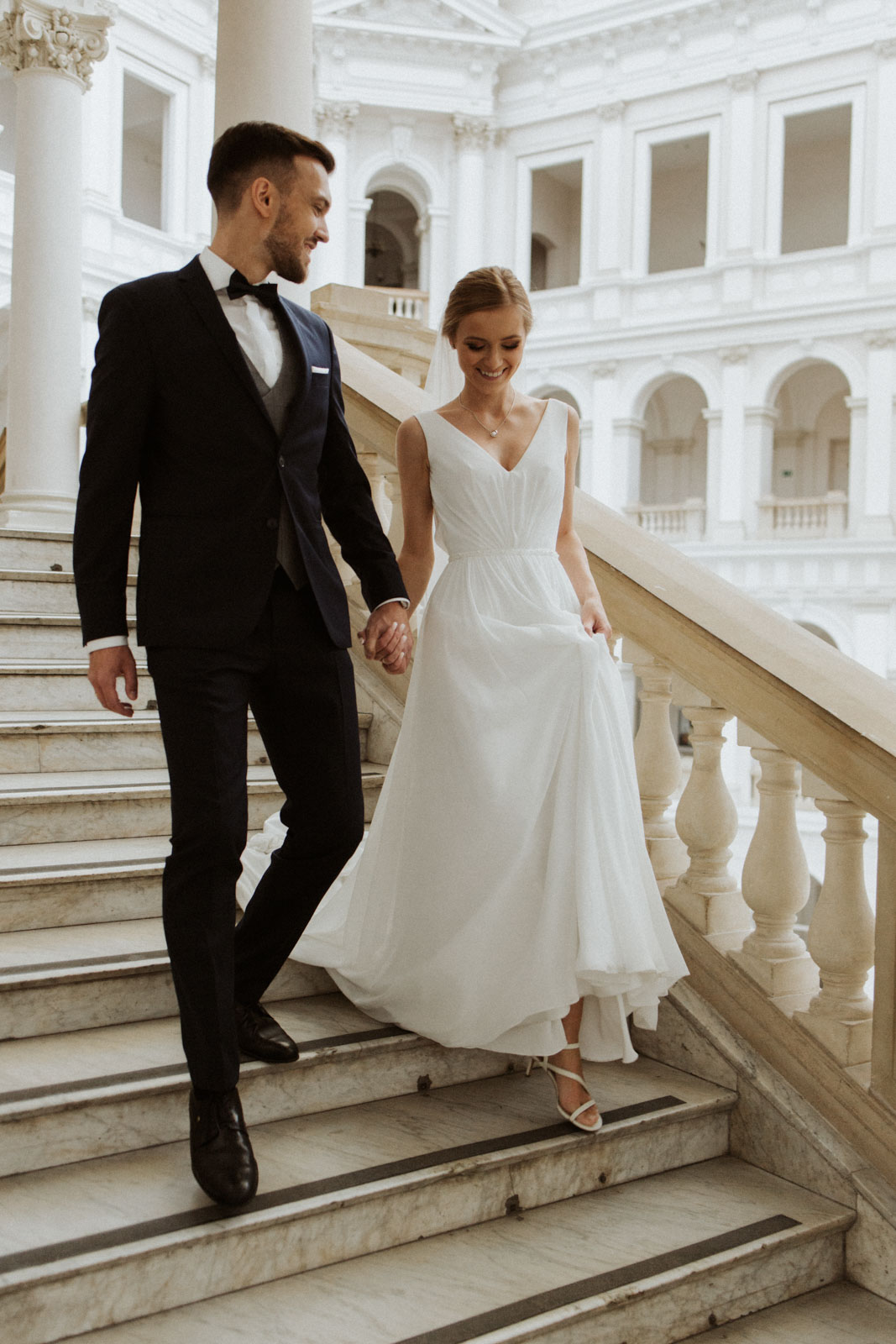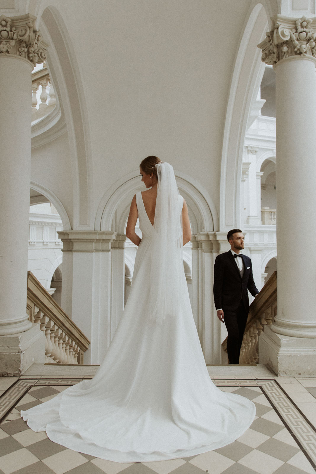 Sesję Kasi i Piotra wykonaliśmy w dwóch miejscach – jej pierwszą część w przepięknej Auli Gmachu Głównego Politechniki Warszawskiej, a następnie pojechaliśmy na Stare Miasto, z którym moja Para była szczególnie związana.