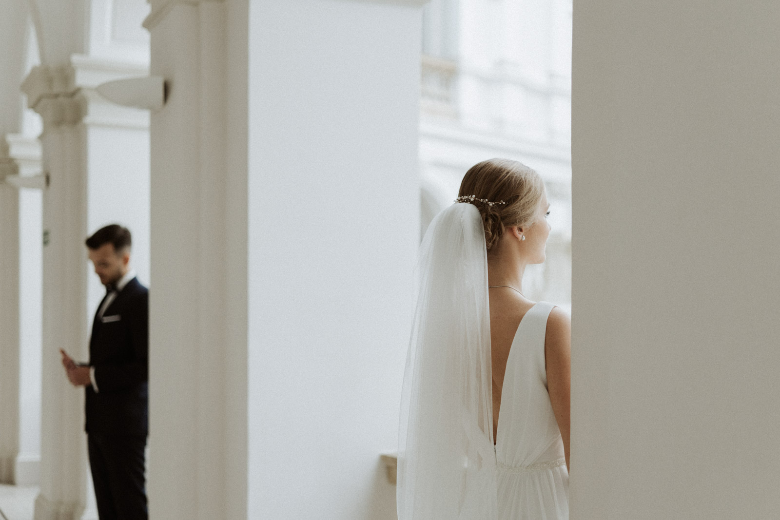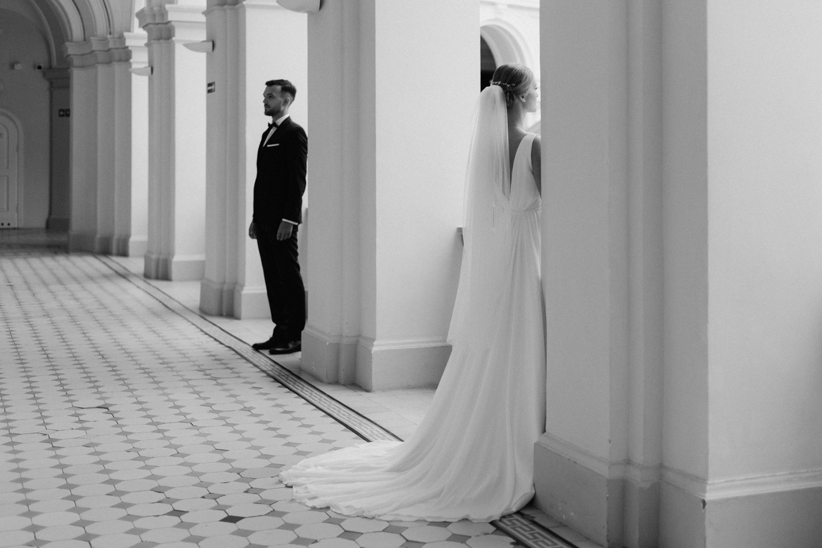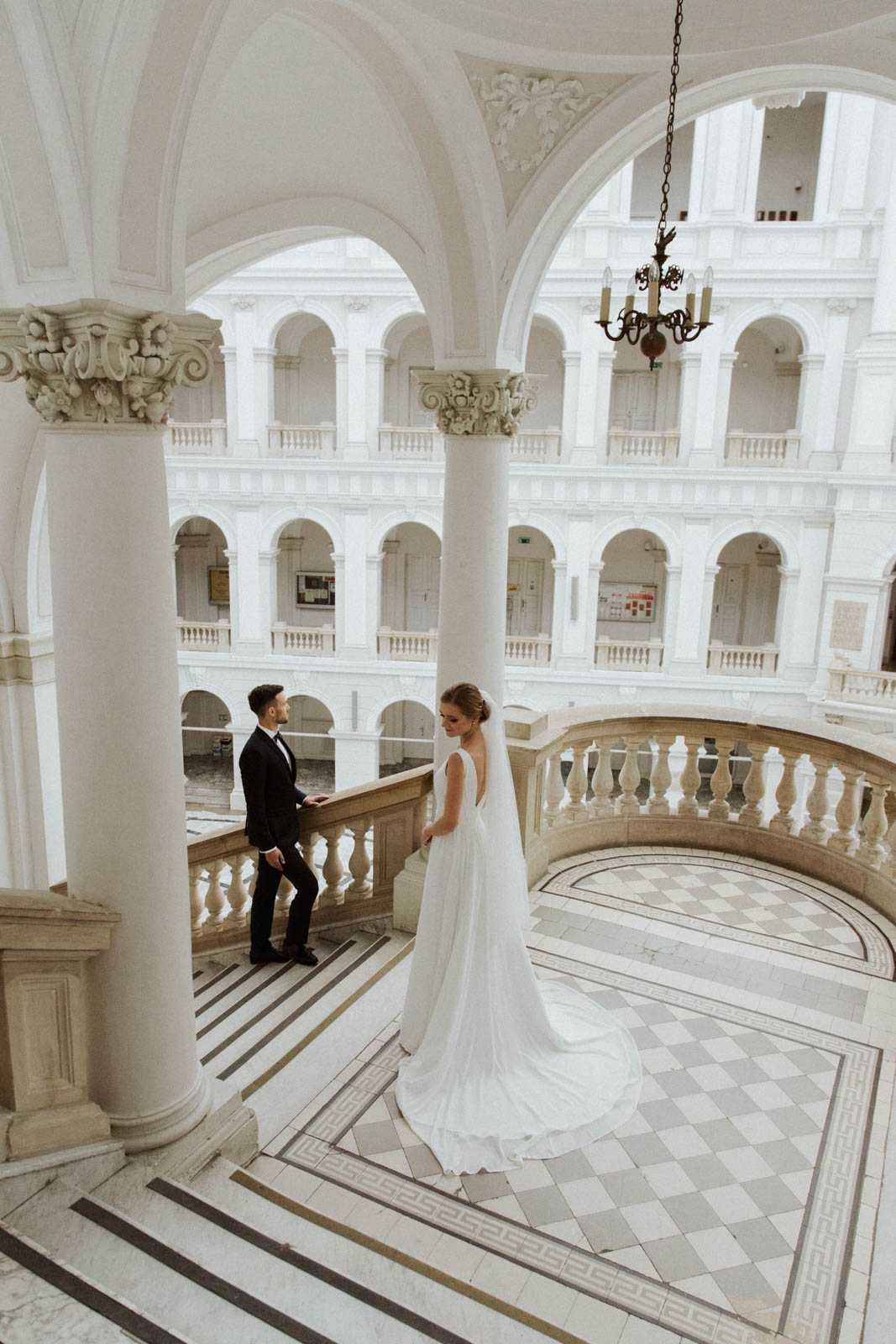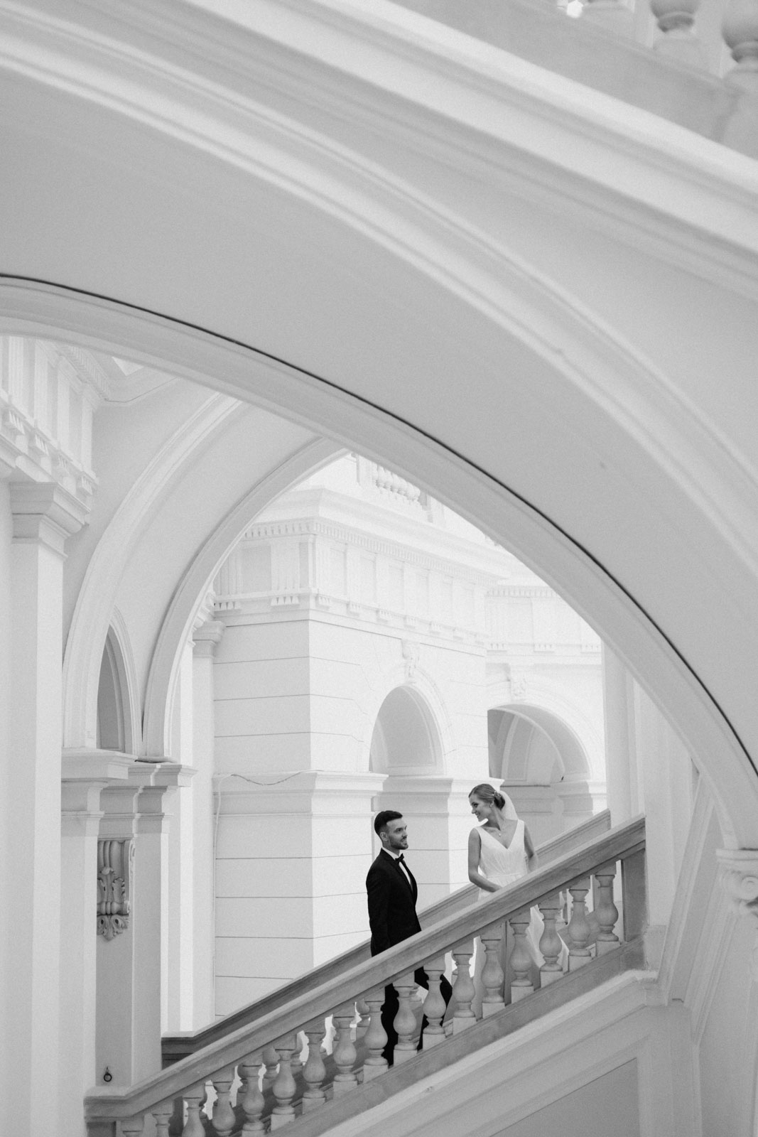 Sesję Kasi i Piotra wykonaliśmy w dwóch miejscach – jej pierwszą część w przepięknej Auli Gmachu Głównego Politechniki Warszawskiej, a następnie pojechaliśmy na Stare Miasto, z którym moja Para była szczególnie związana.