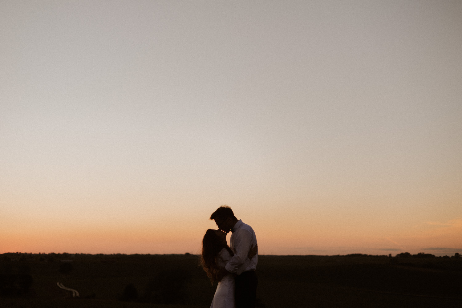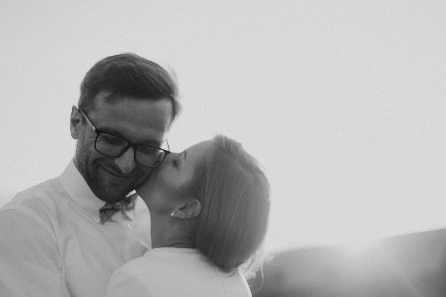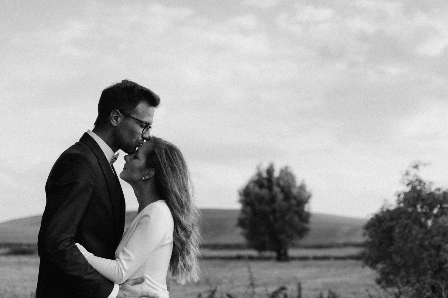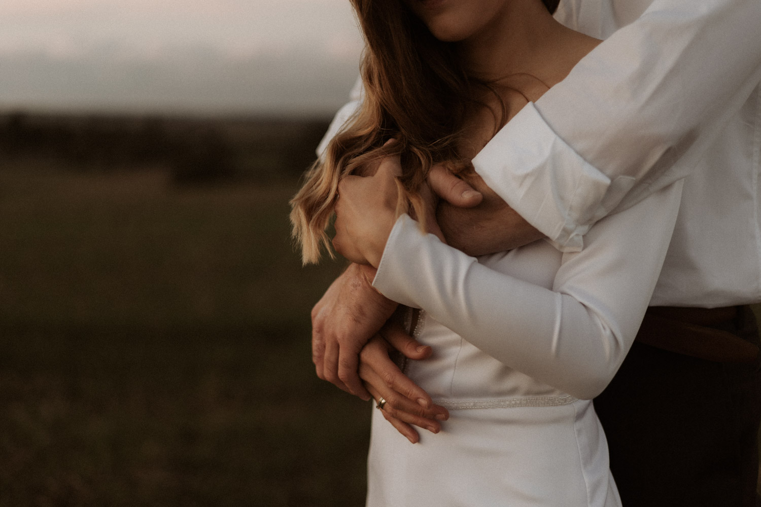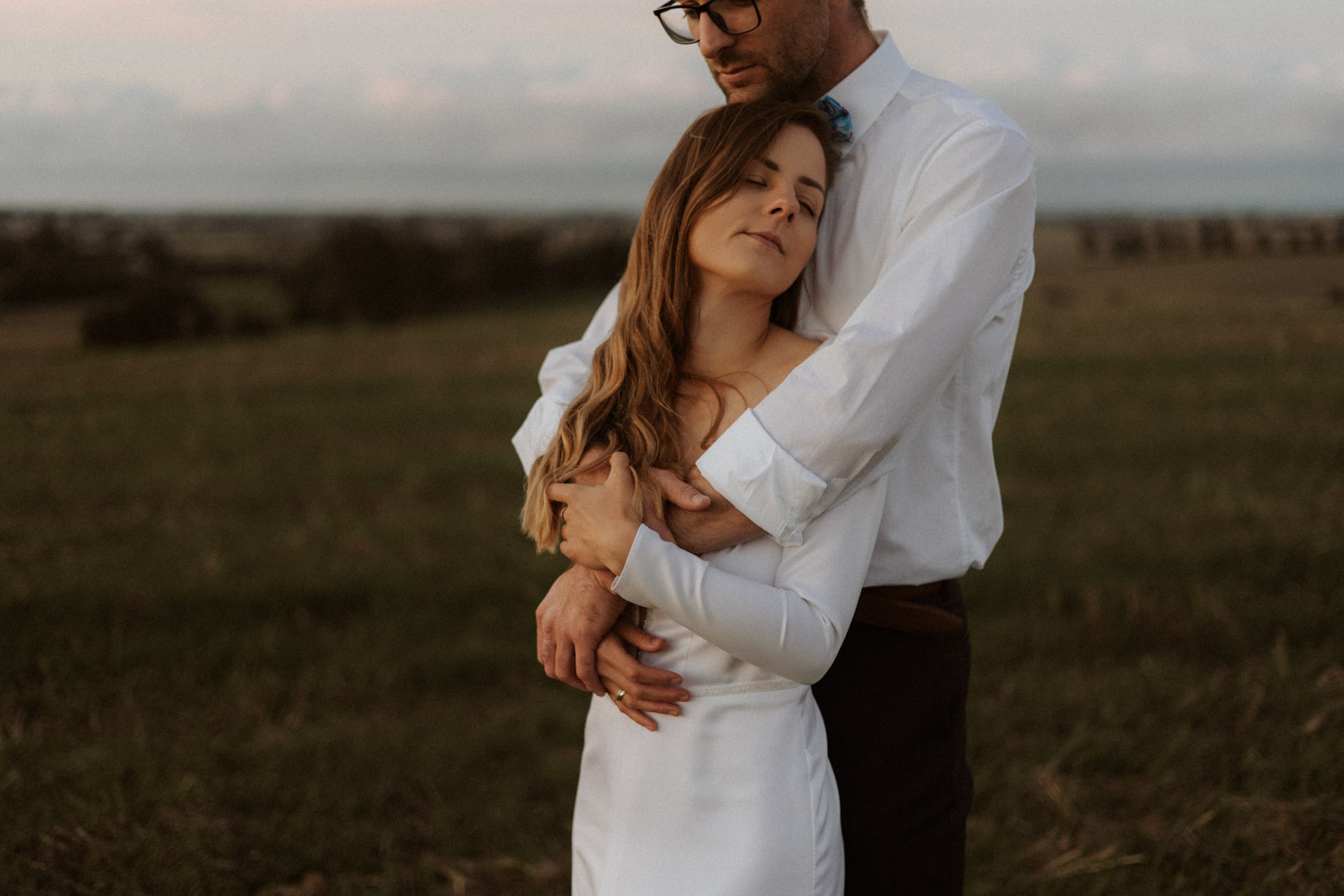 Sesję ślubną Moni i Piotra wykonaliśmy na polach niedaleko Malborka, co pozwoliło nam nie tylo na bliskie, portretowe ujęcia, ale również dalekie, malarskie plany. Sukienka ślubna Moniki pięknie kontrastowała z wczesno wrześniowymi brązami pól i pagórków wokół.